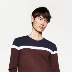 HLA/海澜之家撞色长袖T恤春季热卖圆领修身拼接T恤男 简约圆领 微弹修身 撞色拼接 触感柔软