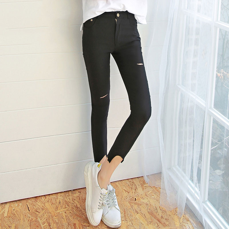 商品名称:韩都衣舍2017春季新款不加绒薄款破洞外穿打底裤女九分裤韩版夏季 领券下单立减/单件包邮/先拍先发货!
